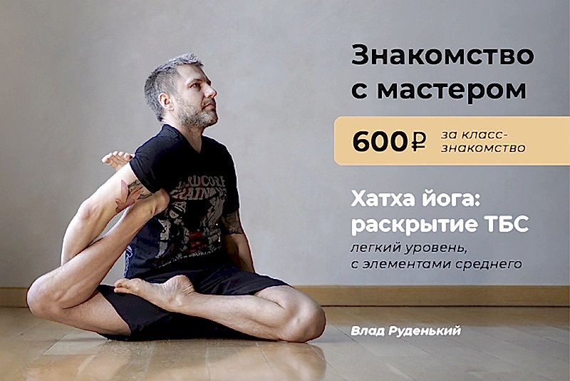 Занятие проводит: Влад Руденький — сертифицированный инструктор хатха-йоги, выпускник преподавательского курса «Праны» 2013 года. Ученик А. В. Лаппы: в 2023 году в Непале прошел интенсивный 300-часовой тичерс-тренинг по Универсальной йоге.