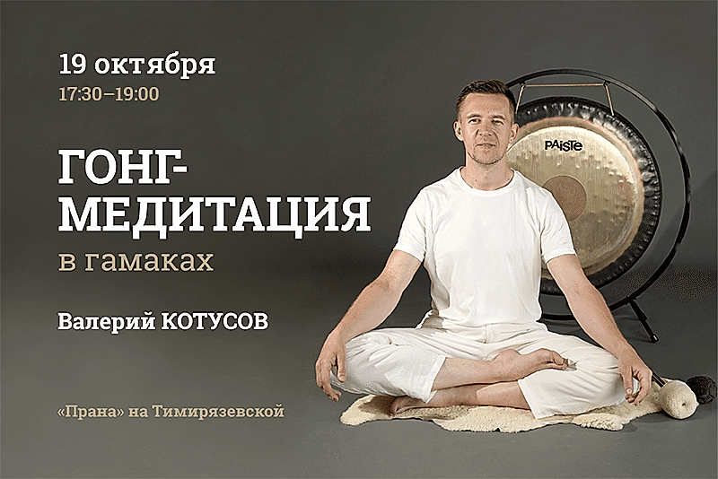 «Друзья, приглашаю вас на медитацию в гамаках под завораживающие звуки гонга. Мы мягко и тактично расслабим тело, нервную систему и мозг и приведем их к глубокому и нежному очищению через звуковые вибрации гонга.